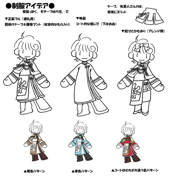 雪国であることを念頭に考えたら、軍服というよりサーコートになりましたかね。